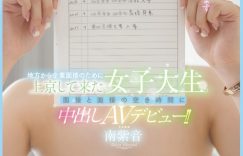 好特别的一张封面!为什么要遮住自己的脸?不用很仔细看就知道,这位名为「南紫音」的新人是用履历表遮住了自己的脸蛋,那为什么要这么做呢?一来是塑造神秘感,二来是因为她的人设就是「正在求职的女大学生」,从乡下来到东京的她是趁着面试的空档来拍AV⋯